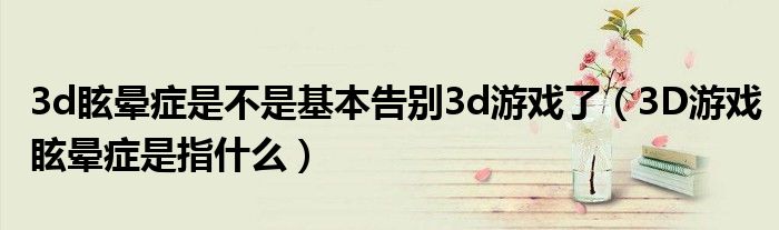 1、3D游戏眩晕是指玩3D游戏时出现头晕恶心的症状。之所以会出现3D游戏眩晕,主要是因为3D游戏是虚拟世界,频率很快,眼睛、大脑、内耳的感受器紊乱,导致大脑无法适应,产生眩晕反应。当出现3D游戏眩晕时,也说明大脑过于疲劳,需要适当休息。