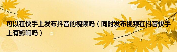 大家好,跳跳为你解答以上问题。可以在快手上发布抖音的视频吗,同时发布视频在抖音快手上有影响吗这个问题很多人还不知道,现在让我们一起来看看吧!