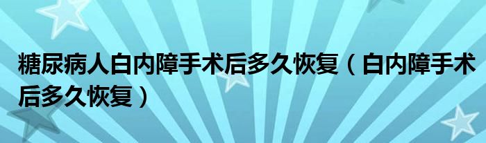 大家好,linda来为大家解答以上的问题。糖尿病人白内障手术后多久恢复,白内障手术后多久恢复很多人还不知道,现在让我们一起来看看吧!