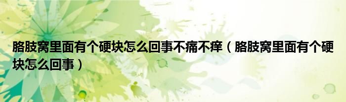 大家好,linda来为大家解答以上的问题。胳肢窝里面有个硬块怎么回事不痛不痒,胳肢窝里面有个硬块怎么回事很多人还不知道,现在让我们一起来看看吧!