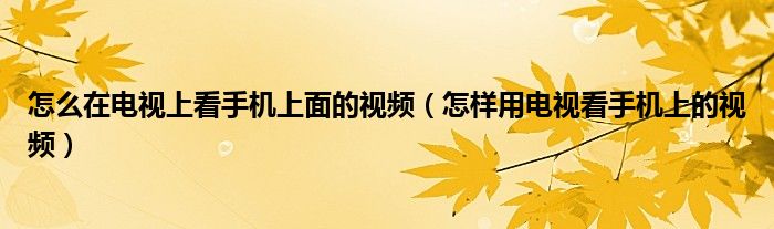 大家好,跳跳为你解答以上问题。怎么在电视上看手机上面的视频,怎样用电视看手机上的视频这个问题很多人还不知道,现在让我们一起来看看吧!
