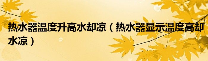 大家好,小叶为你解答以上问题。热水器温度升高水却凉,热水器显示温度高却水凉这个问题很多人还不知道,现在让我们一起来看看吧!