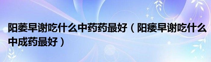 大家好,linda来为大家解答以上的问题。阳萎早谢吃什么中药药最好,阳痿早谢吃什么中成药最好很多人还不知道,现在让我们一起来看看吧!
