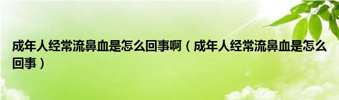 大家好,linda来为大家解答以上的问题。成年人经常流鼻血是怎么回事啊,成年人经常流鼻血是怎么回事很多人还不知道,现在让我们一起来看看吧!
