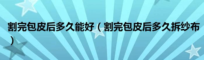大家好,linda来为大家解答以上的问题。割完包皮后多久能好,割完包皮后多久拆纱布很多人还不知道,现在让我们一起来看看吧!