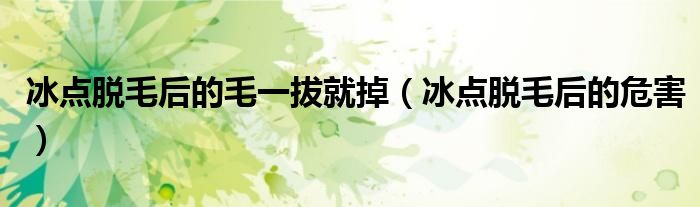 大家好,linda来为大家解答以上的问题。冰点脱毛后的毛一拔就掉,冰点脱毛后的危害很多人还不知道,现在让我们一起来看看吧!
