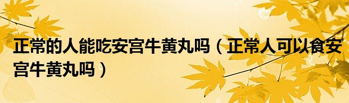大家好,linda来为大家解答以上的问题。正常的人能吃安宫牛黄丸吗,正常人可以食安宫牛黄丸吗很多人还不知道,现在让我们一起来看看吧!