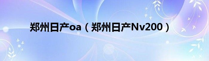 郑州日产oa(郑州日产Nv200)