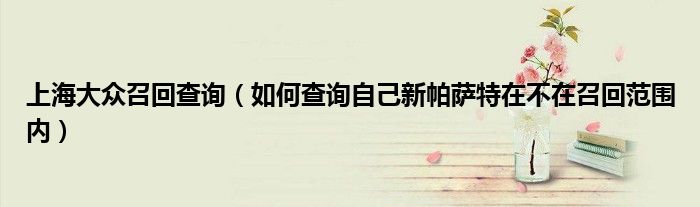 大家好,小常来为大家解答以下问题,对于上海大众召回查询,如何查询自己新帕萨特在不在召回范围内很多人还不知道,今天让我们一起来看看吧!