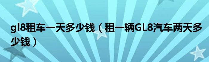 1,租一辆GL8汽车两天多少钱 :租一辆GL8汽车两天,正常这个级别车子租车价位大体在四百左右一天,租两天的话大体需要800左右。