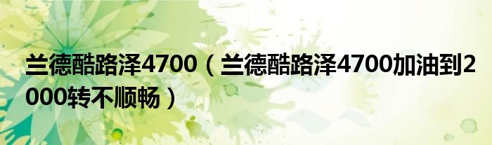 大家好,小常来为大家解答以下问题,对于兰德酷路泽4700,兰德酷路泽4700加油到2000转不顺畅很多人还不知道,今天让我们一起来看看吧!