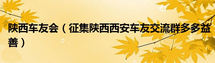 大家好,小常来为大家解答以下问题,对于陕西车友会,征集陕西西安车友交流群多多益善很多人还不知道,今天让我们一起来看看吧!