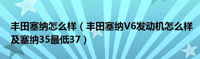 大家好,小常来为大家解答以下问题,对于丰田塞纳怎么样,丰田塞纳V6发动机怎么样及塞纳35最低37很多人还不知道,今天让我们一起来看看吧!