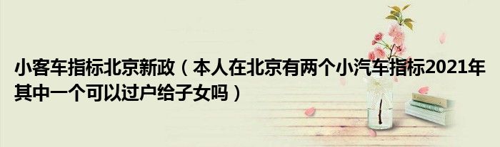 1,本人在北京有两个小汽车指标2021年其中一个可以过户给子女吗 :人在北京有两个小汽车指标,2021年,其中一个可以过户给子女吗?这个是可以过户给子女的。