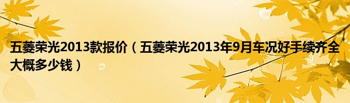 1,五菱荣光2013年9月车况好手续齐全大概多少钱 :展开全部如果没有发生过大的事故,手续没有问题,车子没有泡过水的情况下应该在一万七八左右,具体看实际车况。
