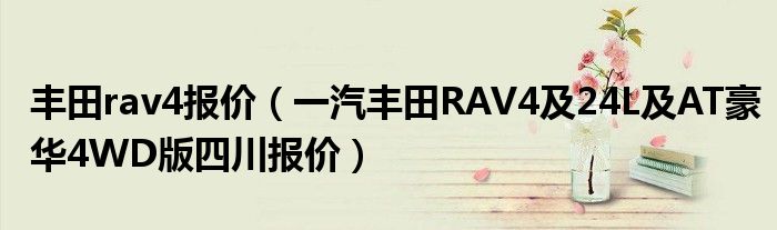 大家好,小常来为大家解答以下问题,对于丰田rav4报价,一汽丰田RAV4及24L及AT豪华4WD版四川报价很多人还不知道,今天让我们一起来看看吧!