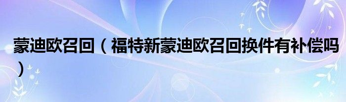 大家好,小常来为大家解答以下问题,对于蒙迪欧召回,福特新蒙迪欧召回换件有补偿吗很多人还不知道,今天让我们一起来看看吧!