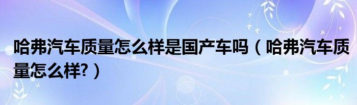 哈弗汽车质量怎么样是国产车吗(哈弗汽车质量怎么样?)