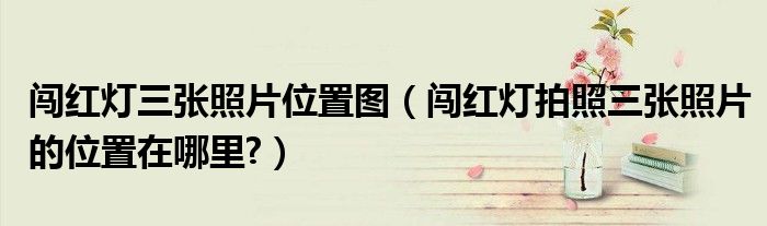 1、闯红灯拍的三张照片位置如下:最新交通法规显示,闯红灯定义为:红灯亮后,如果电子眼拍了三张照片,则定义为闯红灯。
