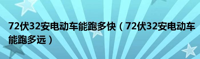 大家好,小美来为大家解答以上问题。72伏32安电动车能跑多快,72伏32安电动车能跑多远很多人还不知道,现在让我们一起来看看吧!