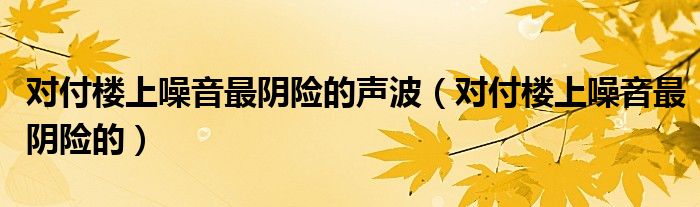 大家好,小晋来为大家解答以下问题,关于对付楼上噪音最阴险的声波,对付楼上噪音最阴险的很多人还不知道,今天让我们一起来看看吧!