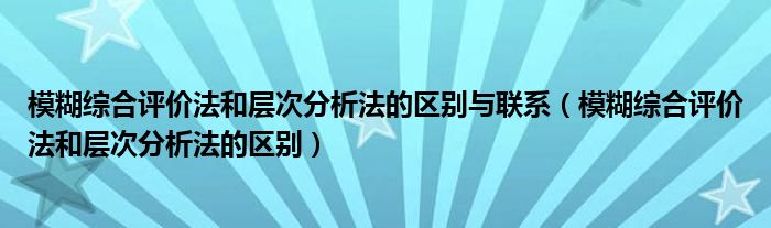关于模糊综合评价法和层次分析法的区别与联系,模糊综合评价法和层次分析法的区别这个很多人还不知道,今天菲菲来为大家解答以上的问题,现在让我们一起来看看吧!