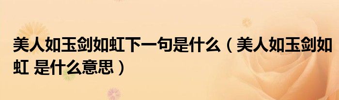 关于美人如玉剑如虹下一句是什么,美人如玉剑如虹 是什么意思这个很多人还不知道,今天菲菲来为大家解答以上的问题,现在让我们一起来看看吧!