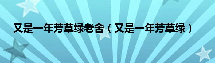 关于又是一年芳草绿老舍,又是一年芳草绿这个很多人还不知道,今天菲菲来为大家解答以上的问题,现在让我们一起来看看吧!