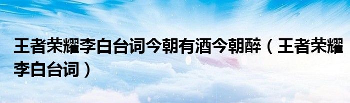 关于王者荣耀李白台词今朝有酒今朝醉,王者荣耀李白台词这个很多人还不知道,今天菲菲来为大家解答以上的问题,现在让我们一起来看看吧!