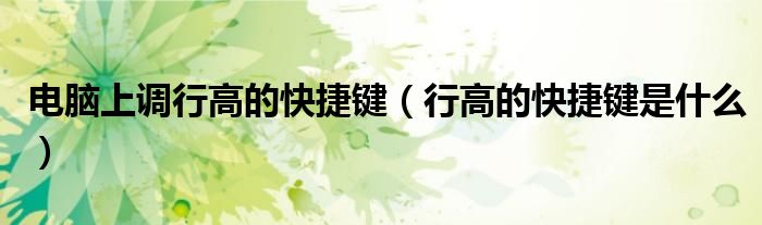 关于电脑上调行高的快捷键,行高的快捷键是什么这个很多人还不知道,今天菲菲来为大家解答以上的问题,现在让我们一起来看看吧!