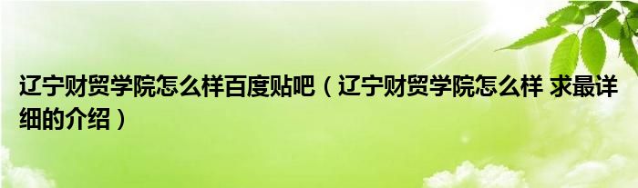 辽宁财贸学院怎么样百度贴吧(辽宁财贸学院怎么样 求最详细的介绍)