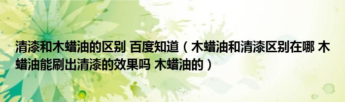 最佳答案关于清漆和木蜡油的区别 百度知道,木蜡油和清漆区别在哪 木蜡油能刷出清漆的效果吗 木蜡油的这个很多人还不知道,今天菲菲来为大家解答以上的问题,现在让我们一起来看看吧!1、木蜡油和清漆肯定是有区别的,完全是两种不同的东西。2、两种最大的区别在于环保性。3、 清漆是无色的,属于石化类油漆...
