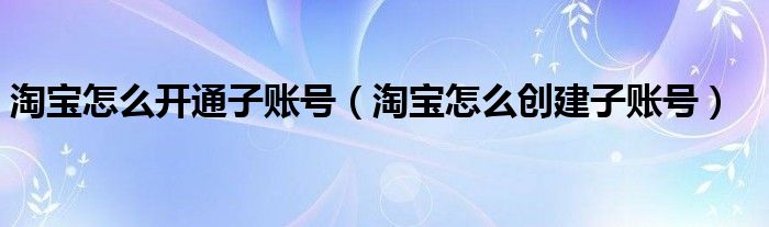 淘宝怎么开通子账号(淘宝怎么创建子账号)