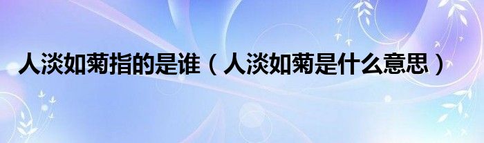 关于人淡如菊指的是谁,人淡如菊是什么意思这个很多人还不知道,今天菲菲来为大家解答以上的问题,现在让我们一起来看看吧!