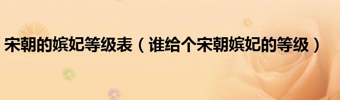 关于宋朝的嫔妃等级表,谁给个宋朝嫔妃的等级这个很多人还不知道,今天菲菲来为大家解答以上的问题,现在让我们一起来看看吧!