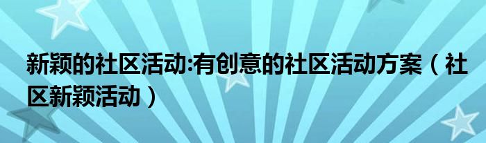 关于新颖的社区活动:有创意的社区活动方案,社区新颖活动这个很多人还不知道,今天菲菲来为大家解答以上的问题,现在让我们一起来看看吧!