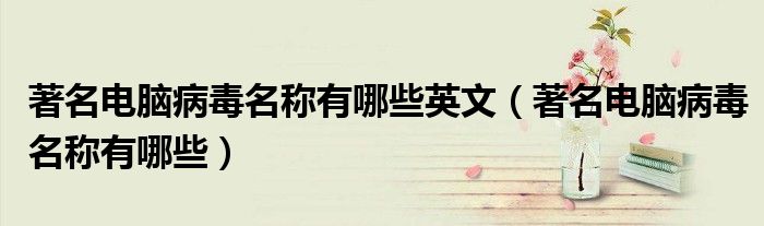 关于著名电脑病毒名称有哪些英文,著名电脑病毒名称有哪些这个很多人还不知道,今天菲菲来为大家解答以上的问题,现在让我们一起来看看吧!