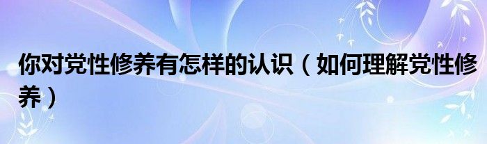 你对党性修养有怎样的认识(如何理解党性修养)