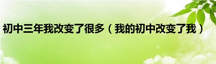 关于初中三年我改变了很多,我的初中改变了我这个很多人还不知道,今天菲菲来为大家解答以上的问题,现在让我们一起来看看吧!