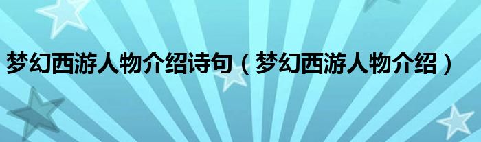 关于梦幻西游人物介绍诗句,梦幻西游人物介绍这个很多人还不知道,今天菲菲来为大家解答以上的问题,现在让我们一起来看看吧!