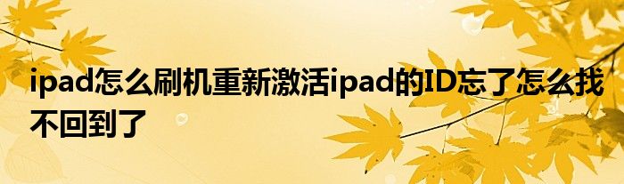 关于ipad怎么刷机重新激活ipad的ID忘了怎么找不回到了这个很多人还不知道,今天菲菲来为大家解答以上的问题,现在让我们一起来看看吧!