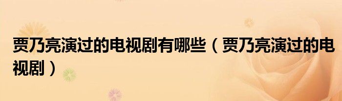 关于贾乃亮演过的电视剧有哪些,贾乃亮演过的电视剧这个很多人还不知道,今天菲菲来为大家解答以上的问题,现在让我们一起来看看吧!