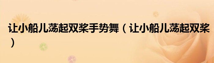 关于让小船儿荡起双桨手势舞,让小船儿荡起双桨这个很多人还不知道,今天菲菲来为大家解答以上的问题,现在让我们一起来看看吧!