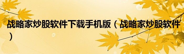 关于战略家炒股软件下载手机版,战略家炒股软件这个很多人还不知道,今天菲菲来为大家解答以上的问题,现在让我们一起来看看吧!