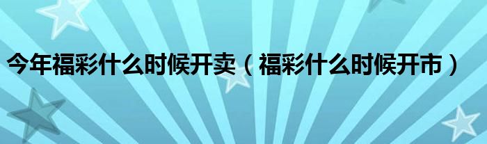 今年福彩什么时候开卖(福彩什么时候开市)