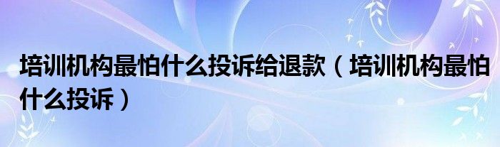 大家好,小晋来为大家解答以下问题,关于培训机构最怕什么投诉给退款,培训机构最怕什么投诉很多人还不知道,今天让我们一起来看看吧!