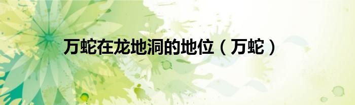 关于万蛇在龙地洞的地位,万蛇这个很多人还不知道,今天菲菲来为大家解答以上的问题,现在让我们一起来看看吧!