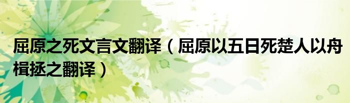 关于屈原之死文言文翻译,屈原以五日死楚人以舟楫拯之翻译这个很多人还不知道,今天菲菲来为大家解答以上的问题,现在让我们一起来看看吧!