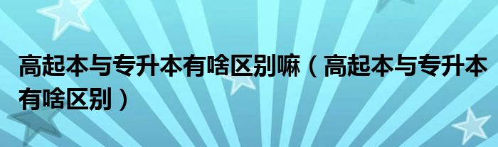关于高起本与专升本有啥区别嘛,高起本与专升本有啥区别这个很多人还不知道,今天菲菲来为大家解答以上的问题,现在让我们一起来看看吧!