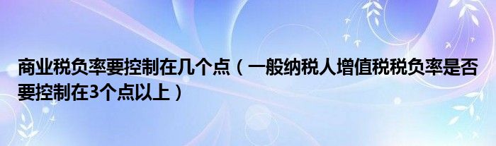 关于商业税负率要控制在几个点,一般纳税人增值税税负率是否要控制在3个点以上这个很多人还不知道,今天菲菲来为大家解答以上的问题,现在让我们一起来看看吧!